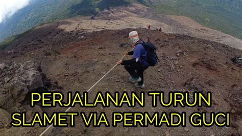 Permadi Guci merupakan salah satu jalur pendakian populer menuju Gunung Slamet. Jalur ini menawarkan pemandangan yang indah dan menantang bagi para pendaki. Estimasi waktu pendakian melalui jalur ini berkisar antara 6 hingga 8 jam. Namun, waktu tempuh dapat bervariasi tergantung pada kondisi fisik dan cuaca.